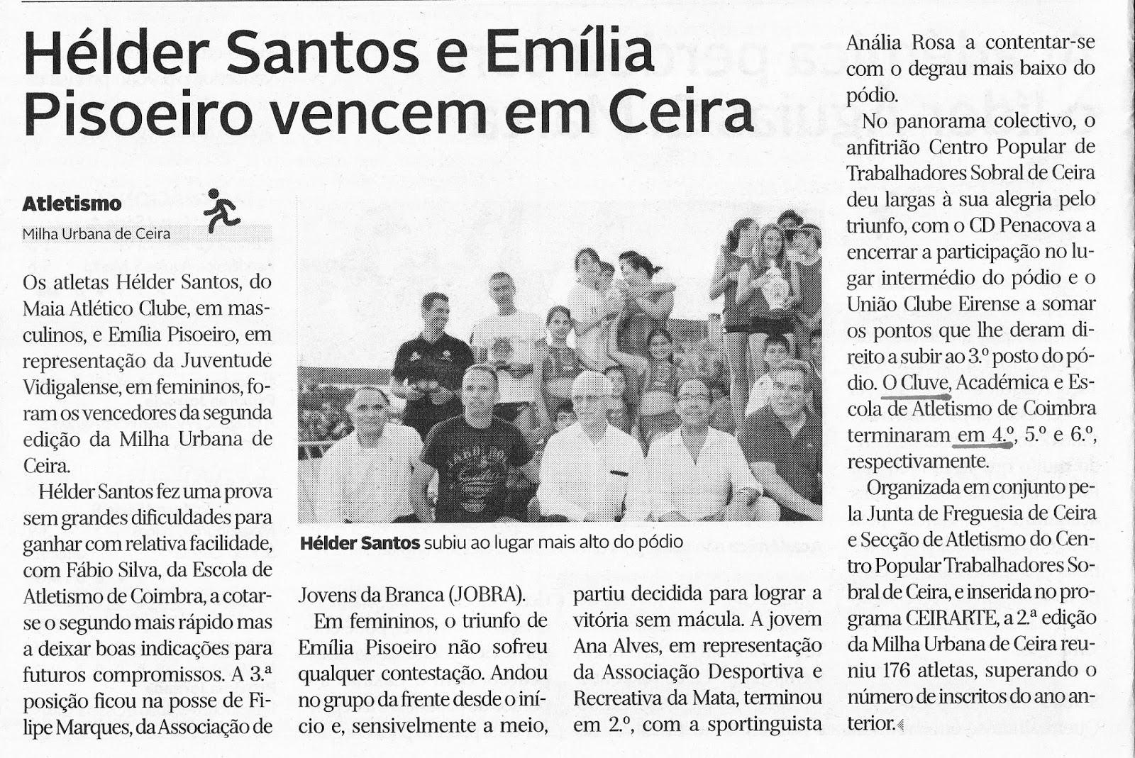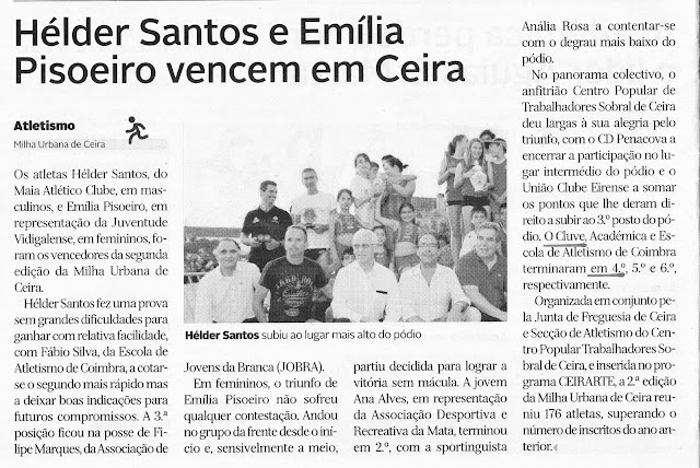 O êxito da 2ª MILHA URBANA DE CEIRA na imprensa regional de hoje. O CLUVE alcançou a 4ª posição da tabela colectiva.